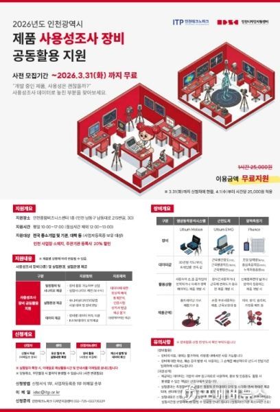 이번 사업은 실제 사용자의 체험을 기반으로 제품·서비스의 편리성과 안전성을 분석하는 사용성조사 장비 지원과, 실물 수준 출력이 가능한 고성능 3D프린팅 지원을 포함한다. 인천종합비즈니스센터 1층 유니버설디자인리빙랩에서 운영되며, 제품 개선 방향 도출부터 시제품 제작까지 연계 지원한다.