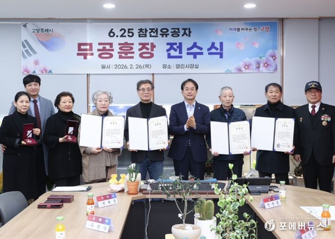 [ 포에버뉴스 김경순 기자 ] 고양특례시는 지난 26일 고양시청 열린시장실에서 ‘6·25참전유공자 무공훈장 전수식’을 개최했다고 밝혔다.