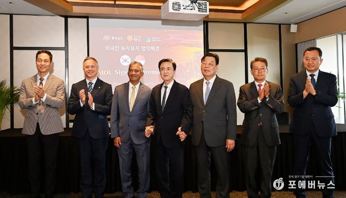 [ 포에버뉴스 사공선 기자 ] 태안군이 6일 싱가포르 스위소텔 더 스탬포드 호텔에서 뷔나그룹과 1조 원대 재생에너지(해상풍력) 투자협약을 맺고 친환경 에너지 산업 중심지로의 도약에 나섰다.