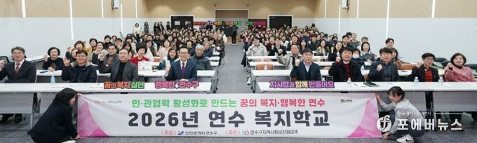 [ 포에버뉴스 김경순 기자 ] 연수구 지역사회보장협의체(공동위원장 이재호·최호영)는 지난 6일 구청 대회의실에서 ‘민관협력 활성화를 위한 2026년 연수 복지학교’를 개최했다.
