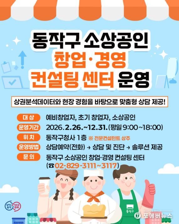 [ 포에버뉴스 김경순 기자 ] 동작구가 지난 3일부터 전국 기초지자체 최초로 관내 소상공인을 위한 창업·경영 컨설팅 센터를 직영 운영한다고 밝혔다.