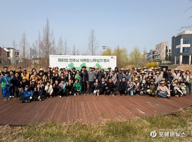 전주시는 27일 혁신동 만성1호근린공원에서 윤동욱 전주시장 권한대행 부시장과 전주시의회 의원, 성현유치원 교사와 원아, 혁신동 주민 등 160여 명이 참여한 가운데 ‘제81회 식목일 나무심기 행사’를 개최했다.