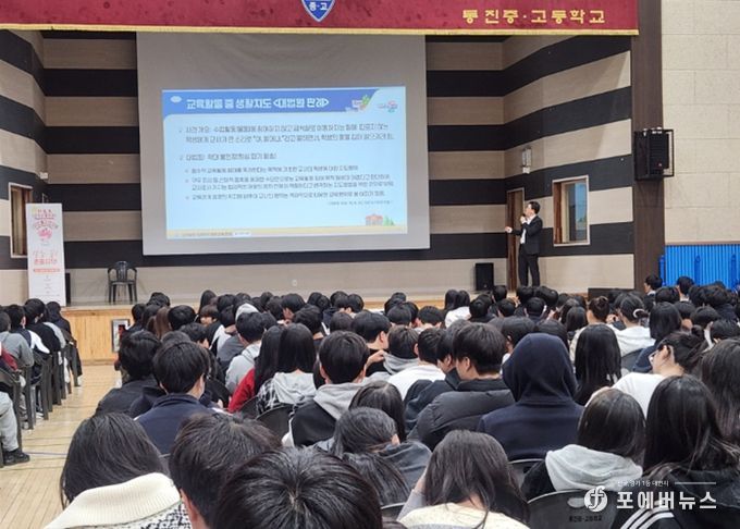 [ 포에버뉴스 김경순 기자 ] 김포교육지원청 교육활동 보호 교육지원단은 2026년 3월 31일 통진중학교에서 전교생 493명을 대상으로 ‘찾아가는 교육활동 보호 예방교육’을 실시했다.