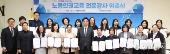 [ 포에버뉴스 김경순 기자 ] 인천광역시교육청은 2일 학생들이 노동의 가치를 배우고 인권 감수성을 함양할 수 있도록 돕는 ‘2026학년도 학교로 찾아가는 노동인권교육 전문강사단’ 위촉식을 개최했다.