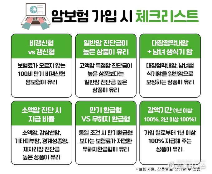 보다 자세한 가입 조건이나 적정 진단금액 설정은 비갱신형 암보험 비교사이트를 활용하여 여러 회사의 상품을 실시간으로 보험료 비교도 해볼 수 있으며, 다양한 정보를 비대면으로 주말까지 전문가와 상담이 가능하므로 3대진단비 등 종합건강보험 가입 시 편리하게 이용할 수 있다.