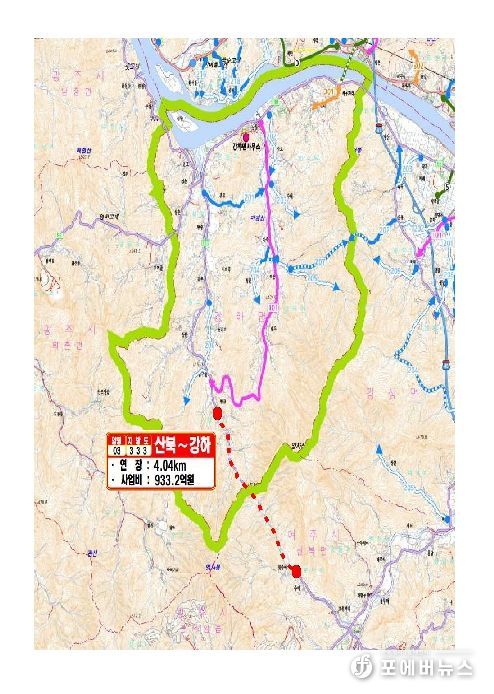 이번 계획에 반영된 ‘지방도333호선 산북~강하 간 도로건설사업’은 양평군 강하면 항금리와 여주시 산북면을 연결하는 지역 간 지방도 노선으로, 군은 이 가운데 미개설로 단절된 4.04㎞ 구간에 총사업비 933억 원을 투입해 2차로로 신설할 계획이다.