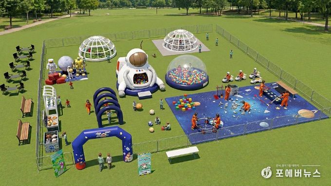 이번 야외 키즈카페는 단순한 놀이공간을 넘어 체험 중심의 ‘테마형 놀이공간’으로 꾸며진다. 테마는 ▲뚝딱뚝딱 건축가 ▲와글와글 동물농장 ▲산불을 조심해 ▲신병교육대 ▲신비한 우주 등 5가지다. 각 공간에서는 역할놀이와 신체활동, 미션수행이 결합된 프로그램을 통해 아이들이 건축가, 소방관, 우주비행사 등 다양한 직업과 역할을 체험할 수 있도록 했다.
