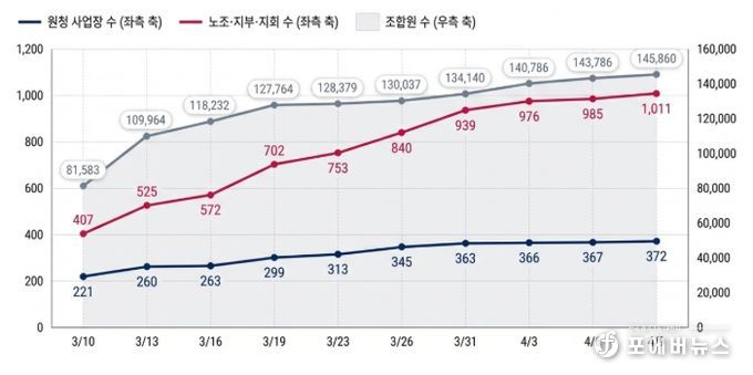 [ 포에버뉴스 사공선 기자 ] 고용노동부는 개정 노동조합법 시행(’26.3.10.) 이후 1개월여 간 현장상황 파악 및 지도를 위해 원청 사업장에 대한 하청 노조의 교섭요구 현황 등을 확인·집계해 왔으며, 법 시행 1개월이 되는 4월 10일, 그간의 집계현황을 발표하면서 운영 상황도 함께 점검했다.
