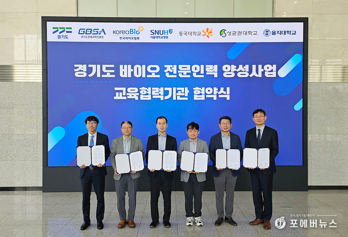 경과원은 14일 수원 광교 바이오센터에서 ‘2026년 경기도 바이오 전문인력 양성사업’ 추진을 위해 한국바이오협회, 분당서울대병원, 성균관대학교, 동국대학교(일산), 을지대학교(의정부)와 업무협약을 체결했다고 밝혔다.