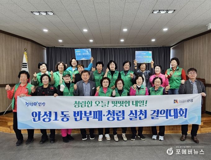 [ 포에버뉴스 김경순 기자 ] 안성시 안성1동은 4월 16일 새마을지도자 안성1동 부녀회를 중심으로 ‘청렴해 봄’ 릴레이 청렴결의대회를 이어가며, 생활 속 청렴 실천 확산과 외부청렴도 향상에 나섰다.