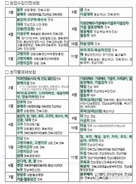 벼는 지난해 4개 시·군을 대상으로 운영했고, 올해 16개 시·군에 신규 도입하여 총 20개 시·군에서 확대 운영된다. 아울러, 봄배추·봄무는 평창 등 주산지 중심으로 시범 운영에 착수하는 한편, 봄감자·고구마·옥수수는 전국으로 확대하여 운영한다.