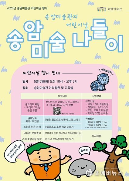 [ 포에버뉴스 김경순 기자 ] 인천광역시 송암미술관은 5월 5일 어린이날을 맞아 체험행사 '송암 미술 나들이'를 개최한다고 밝혔다.
