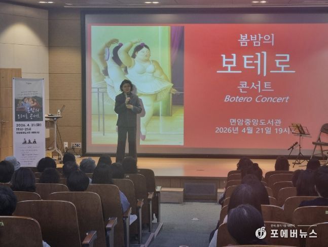 [ 포에버뉴스 김경순 기자 ] 포천시는 지난 21일 면암중앙도서관에서 시민 및 공직자 100여 명을 대상으로 ‘봄밤의 보테로 콘서트’ 개최했다.