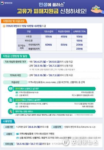 [ 포에버뉴스 김경순 기자 ] 김포시가 최근 중동 전쟁 등 대외 경제 불확실성으로 급등한 유가와 물가로 고통받는 시민들을 위해 ‘고유가 피해지원금’ 지급을 시작한다고 밝혔다. 신속한 지원을 위해 기초수급자·차상위계층·한부모가족을 1차로 우선 지급하고 건보료 등을 통해 대상 확정 후 김포시민 70%에게 2차 지급한다.
