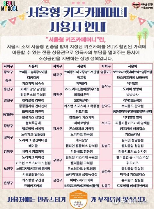 특히 어린이날이 포함된 5월 가정의 달 동안 이용 수요가 집중되는 만큼, 양육자는 보다 저렴한 비용으로 키즈카페를 이용하고, 민간 사업자는 이용객이 증가할 것으로 기대된다. 서울형 키즈카페머니는 2023년 9월 첫 발행 이후 10만 명 이상(101,354명)이 이용했으며, 올해 2월 발행한 20억 원 규모 역시 하루만에 완판되는 등 높은 호응을 얻고 있다