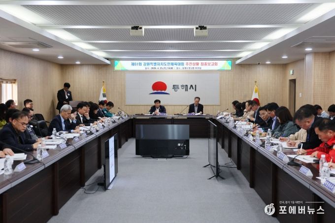 [ 포에버뉴스 사공선 기자 ] 동해시는 제19회 강원특별자치도장애인생활체체육대회(D-25)와 제61회 강원특별자치도민체육대회(D-50)를 앞두고 성공적인 개최를 위해 막바지 준비 상황을 최종 점검했다고 밝혔다.