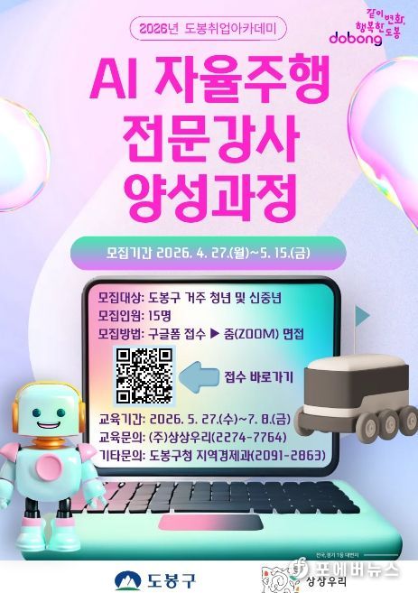[ 포에버뉴스 김경순 기자 ] 서울 도봉구가 인공지능(AI) 자율주행 기술 시대를 선도할 전문 인력을 양성한다.