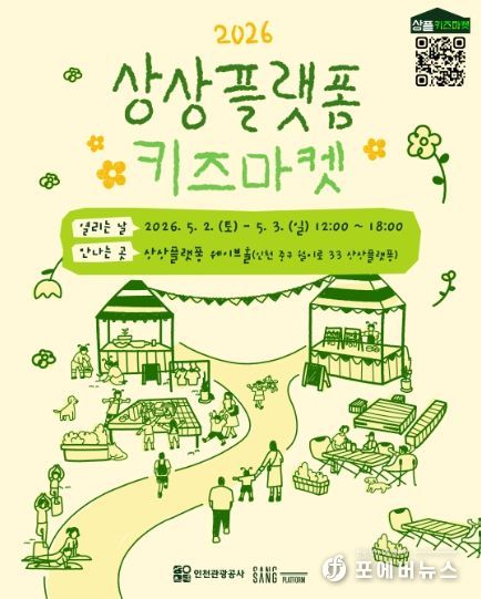 [ 포에버뉴스 김경순 기자 ] 인천관광공사는 오는 5월 2일부터 3일까지 이틀간, 상상플랫폼 웨이브홀에서 “2026 상상플랫폼 키즈마켓”을 개최한다고 밝혔다.