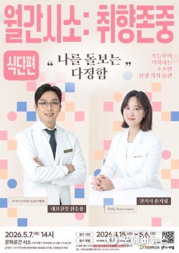 7일에는 다이트 한의원 부평점 신수용·손지성 원장이 ‘나를 돌보는 다정함, 오늘부터 시작하는 소소한 건강 식사 습관’을 주제로 강연을 진행한다.