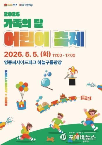 [ 포에버뉴스 김경순 기자 ] (재)인천중구문화재단은 어린이날을 맞이해 오는 5월 5일 영종씨사이드파크 하늘구름광장에서 ‘2026 가족의 달 어린이 축제’를 개최한다고 밝혔다.