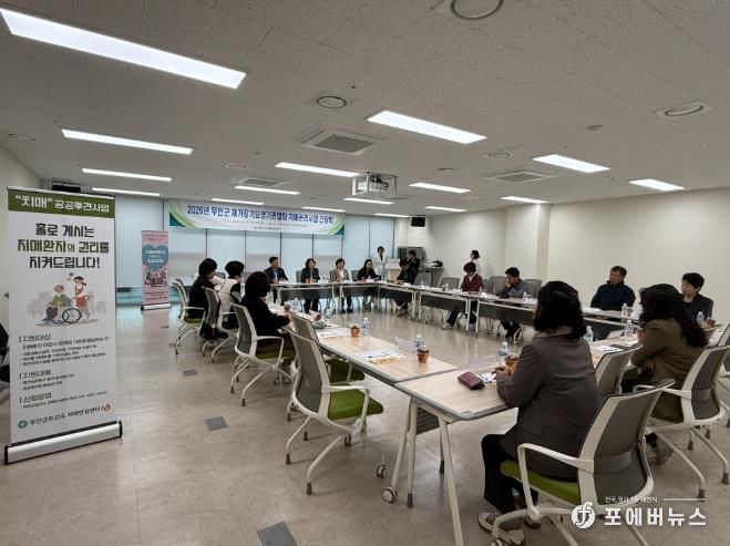 [ 포에버뉴스 오명숙 기자 ] 무안군은 지난 20일 무안군보건소에서 지역 내 치매어르신에 대한 체계적인 관리와 돌봄 사각지대 해소를 위해 무안군 재가장기요양기관협회 대표자들과 간담회를 개최했다.