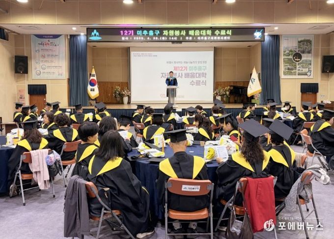 [ 포에버뉴스 김경순 기자 ] 인천 미추홀구종합자원봉사센터는 28일 미추홀구청 대회의실에서 ‘2026년 미추홀구 자원봉사 배움 대학 수료식’을 개최했다.