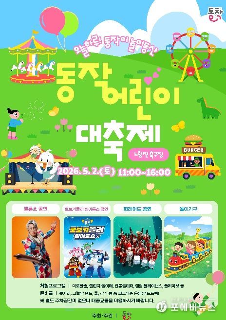 [ 포에버뉴스 김경순 기자 ] 동작구가 어린이날을 맞아 어린이와 가족이 함께 즐기는 ‘2026 동작어린이대축제’를 개최한다고 밝혔다.