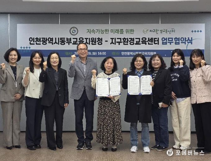 [ 포에버뉴스 김경순 기자 ] 인천동부교육지원청은 28일 지구환경교육센터와 지속가능한 미래 실현 및 생태전환교육 활성화를 위한 업무협약을 체결했다.