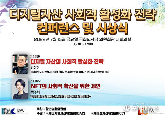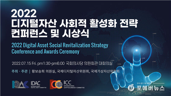 [ 포에버뉴스 김경순 기자 ] ‘디지털자산 사회적 활성화 전략 컨퍼런스 및 시상식’ 이 7월 15일 국회의사당 의원회관 대회의실에서 오후 1시 30분부터 오후 6시까지 개최된다.