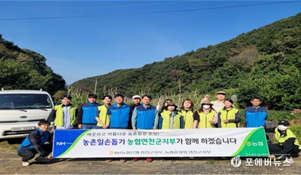 이날 일손돕기에는 오문석 지부장 등 농협은행 연천군지부, 연천군청출장소 직원 등 20여명이 참여하여, 환경오염 및 산불 등 자연재해의 원인인 영농폐자재(폐비닐, 농약병 등)를 수거하는 활동을 펼쳤다.
