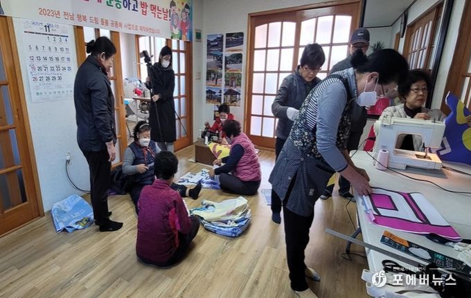 장흥군 농어촌신활력센터와 협업을 통해 군에서 폐현수막 1,300매를 제공하고 장흥읍 행원1구, 관산읍 우산리, 부산면 용반리의 마을공동체사업 주민 33명의 손길이 더해져 폐현수막의 화려하게 변신했다.