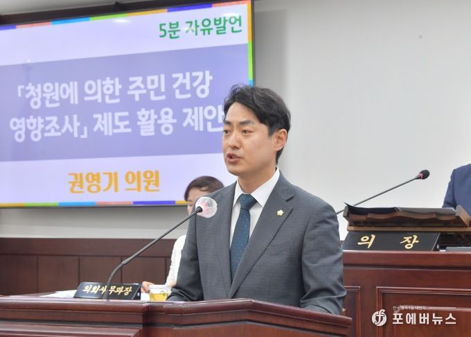 [ 포에버뉴스 김경순 기자 ] 동두천시의회 권영기 의원(국민의힘, 나 선거구)이 '환경보건법' 제17조에 따른 ‘주민 건강영향조사’의 적극 홍보와 청원 지원을 제안했다.