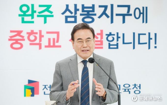 [ 포에버뉴스 이승훈 기자 ] 서거석 전북특별자치도교육감은 17일 “완주 삼봉지구에 총 19학급 규모의 중학교를 신설하겠다”고 말했다.