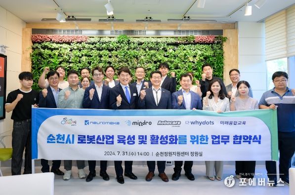 [ 포에버뉴스 오명숙 기자 ] 순천시는 7월 31일 순천정원지원센터에서 순천시 로봇산업 본격 육성을 위해 로봇기업들과 업무 협약식을 개최했다.