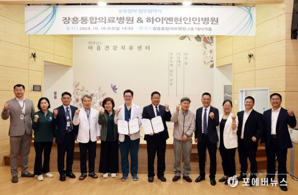 장흥통합의료병원과 하이예현인민병원은 16일 업무협약을 체결해 의료 분야 교류에 물꼬를 텄다.