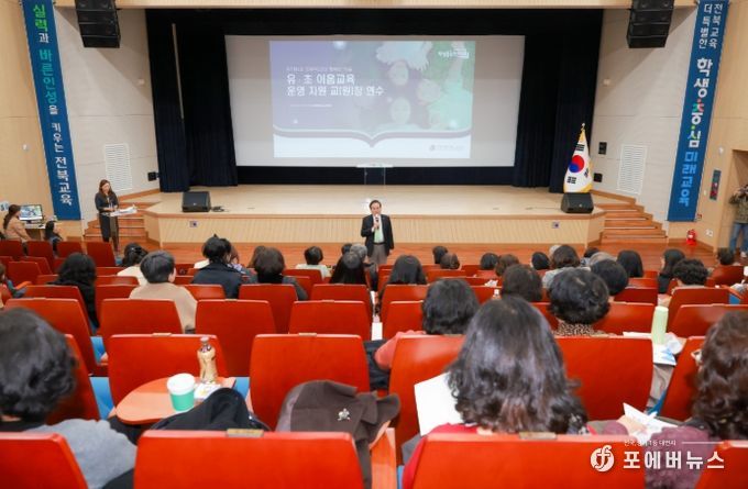 [ 포에버뉴스 이승훈 기자 ] 전북특별자치도교육청은 3일 본청 창조나래 시청각실에서‘유․초 이음교육 운영 지원 교(원)장 연수’를 개최했다.