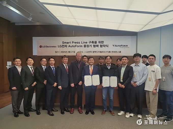 [ 포에버뉴스 김경순 기자 ] LG전자와 스위스에 본사를 둔 글로벌 소프트웨어 기업 오토폼(AutoForm)이 ‘스마트 프레스 라인 구축’을 위한 전략적 업무협약(MOU)을 체결하고, 제조 산업의 디지털 전환(Digital Transformation)을 가속화하기 위한 공동 프로젝트에 본격 착수했다.