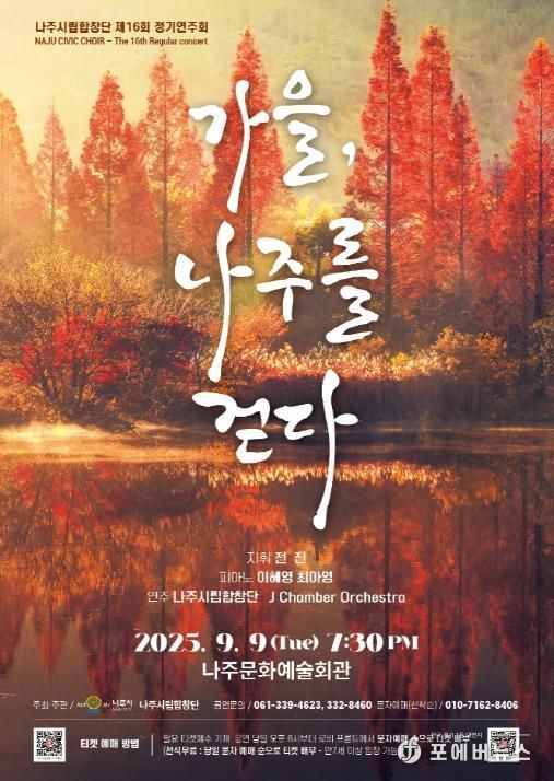 [ 포에버뉴스 오명숙 기자 ] 전라남도 나주시가 오는 9일 저녁 7시 30분 나주문화예술회관에서 나주시립합창단 제16회 정기연주회 ‘가을 나주를 걷다’를 개최한다.