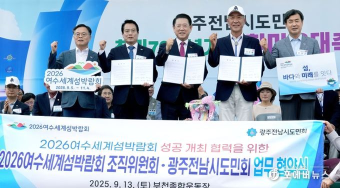 (재)2026여수세계섬박람회조직위원회와 광주전남시도민회는 ▲박람회 성공 개최를 위한 홍보·마케팅 협력 ▲출향민 고향방문 프로그램 운영 지원 ▲정보 교류 및 협력사업 발굴 등을 담은 협약을 하고, 박람회 종료 시까지 긴밀히 협력키로 했다.
