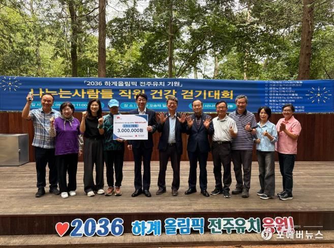 이순태 (사)나누는사람들 대표이사는 “작년에 이어 올해도 함께 걸으면서 하계올림픽 전주 유치를 응원하고, 전 직원이 서로를 알고 법인의 소속감을 높이는 계끼가 되길 바란다”면서 “지역의 소외된 어르신들을 위한 나눔 프로젝트에 동참하게 돼 기쁘고, 앞으로도 지역사회를 위한 기부와 지원을 꾸준히 이어가며 지역사회 발전에 기여하겠다”고 밝혔다.