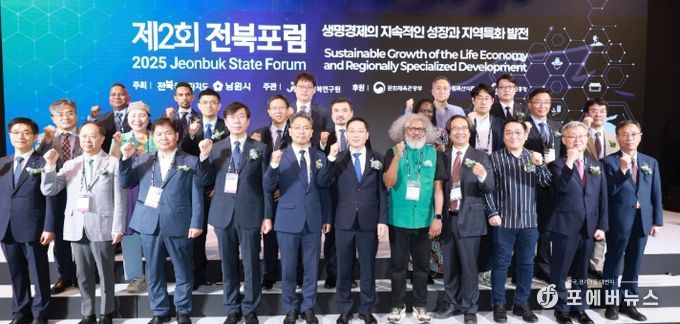 [ 포에버뉴스 이승훈 기자 ] 생명경제 비전 실현을 위한 글로벌 협력의 장인 제2회 ‘전북포럼’이 24일 남원 스위트호텔에서 성황리에 개최됐다. 이번 포럼을 통해 전북은 국제사회와의 연대를 강화하고, 농생명·문화관광 산업을 중심으로 한 지역 특화 발전 전략을 국내외에 공유하며 생명경제도시로의 도약 기반을 다졌다.