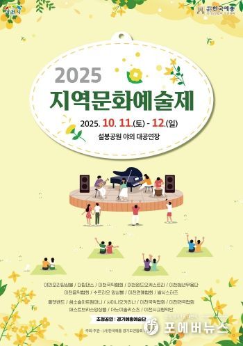 [ 포에버뉴스 박정배 기자 ] (사)한국예총 이천지회가 주최·주관하는 지역 예술인들의 축제인 ‘2025년 지역문화예술제’가 오는 10월 11일부터 12일까지 이틀간 오후 2시부터 오후 6시 30분까지 설봉공원 야외대공연장에서 개최된다.