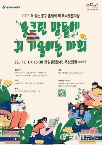 [ 포에버뉴스 오명숙 기자 ] 광주 동구는 오는 11월 1일 오후 3시 30분 전일빌딩 245 옥상정원(전일마루)에서 2025 책 읽는 동구 ‘올해의 책’ 독서 토론마당을 개최한다고 밝혔다.
