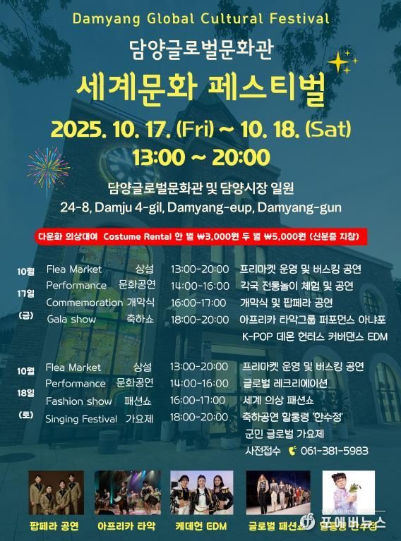 군 관계자는 “이번 축제가 다문화 가족과 군민, 방문객이 세계 여러 나라의 문화를 함께 체험하고 소통하는 계기가 되길 바란다”며 “앞으로도 담양글로벌문화관이 지역 사회의 문화 다양성을 확산시키는 중심 공간이 되도록 노력하겠다”라고 말했다