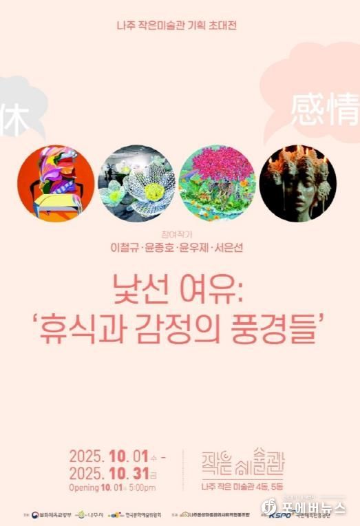 14일 나주시에 따르면 지난 10월 1일부터 오는 31일까지 한 달간 나주 작은미술관에서 기획 초대전 ‘낯선 여유: 휴식과 감정의 풍경들’ 기획전을 개최하고 있다.