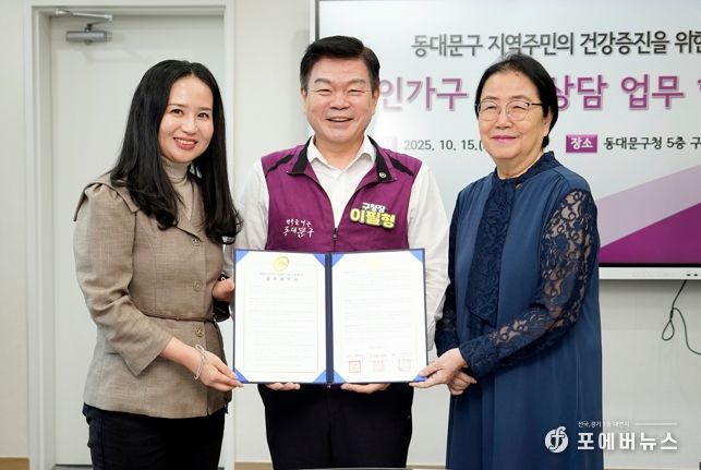 [ 포에버뉴스 김경순 기자 ] 서울 동대문구는 15일 의료생활협동조합 사랑나눔치과(이사장 문영자) 및 동대문구가족센터(센터장 한미영)와 1인가구의 치아건강 증진을 위한 업무협약을 체결했다.