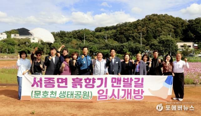 [ 포에버뉴스 박정배 기자 ] 양평군 서종면은 지난 17일 오후 1시, 서종면 문호리 968 일대 문호천 생태공원에서 ‘서종면 흙향기 맨발길’ 임시 운영을 기념하는 걷기 행사를 개최했다.