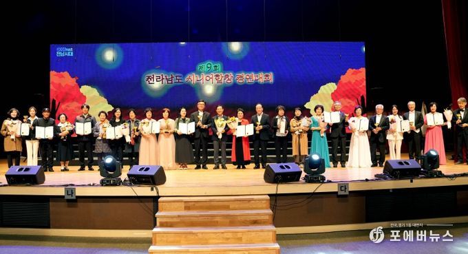 [ 포에버뉴스 오명숙 기자 ] 전남지역 어르신들이 깊이 있는 하모니를 선보인 제9회 전남도 시니어합창 경연대회에서 나주 은파합창단이 최우수상의 영예를 안았다.