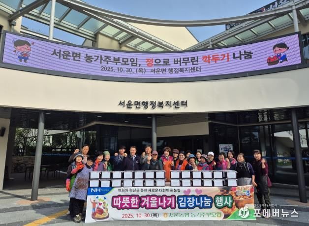 [ 포에버뉴스 김경순 기자 ] 10월 30일 서운면 농협 농가주부모임은 지역 내 어려운 이웃들을 위한 ‘따뜻한 겨울나기 김장 나눔 행사’를 실시했다.