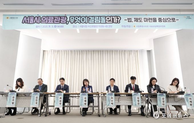 [ 포에버뉴스 김경순 기자 ] 서울특별시의회 의료관광특별위원회가 5일 ‘서울시 의료관광, 무엇이 걸림돌인가?’를 주제로 정책토론회를 열고 급성장한 의료관광 산업의 지속가능성을 높이기 위한 제도 개선 과제를 논의했다.